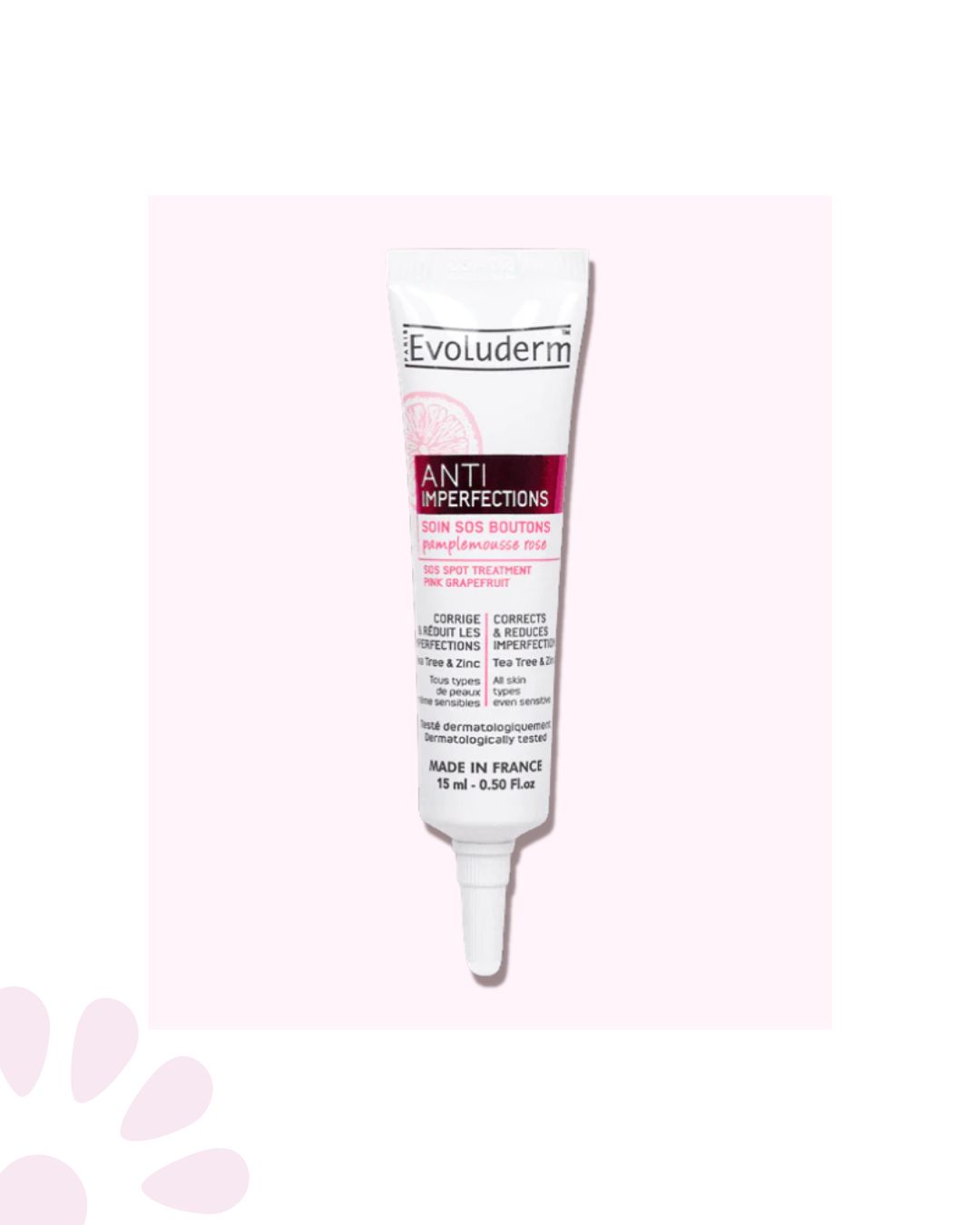 Formula con Pomelo Rosa, este tratamiento Anti-Imperfecciones y Espinillas ideal para todo tipo de piel, gracias a su fórmula enriquecida con Árbol de Té y Zinc, este tratamiento específico seca, corrige y reduce visiblemente las imperfecciones incluso en las pieles sensibles. Su textura en gel fresco de secado rápido es ideal para usar en cualquier momento del día y corrige las imperfecciones al instante