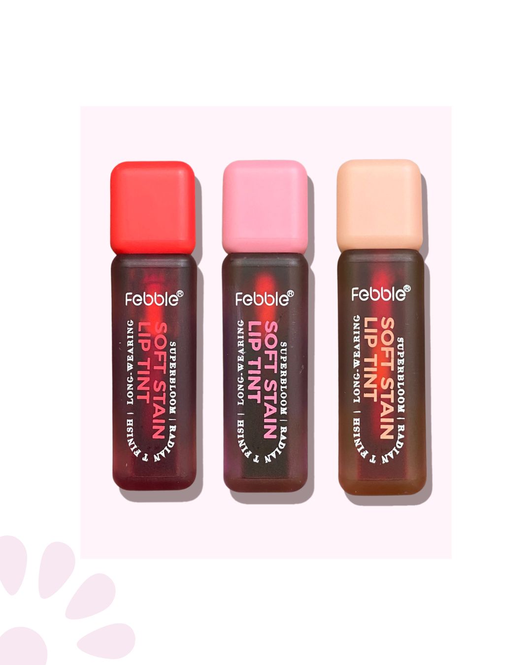 Descubre la Tinta de Labios Febble, tu aliada perfecta para lograr un look fresco, natural y lleno de color. Disponible en tres tonos versátiles. Esta tinta se adapta a cualquier ocasión, desde un día casual hasta una noche especial.