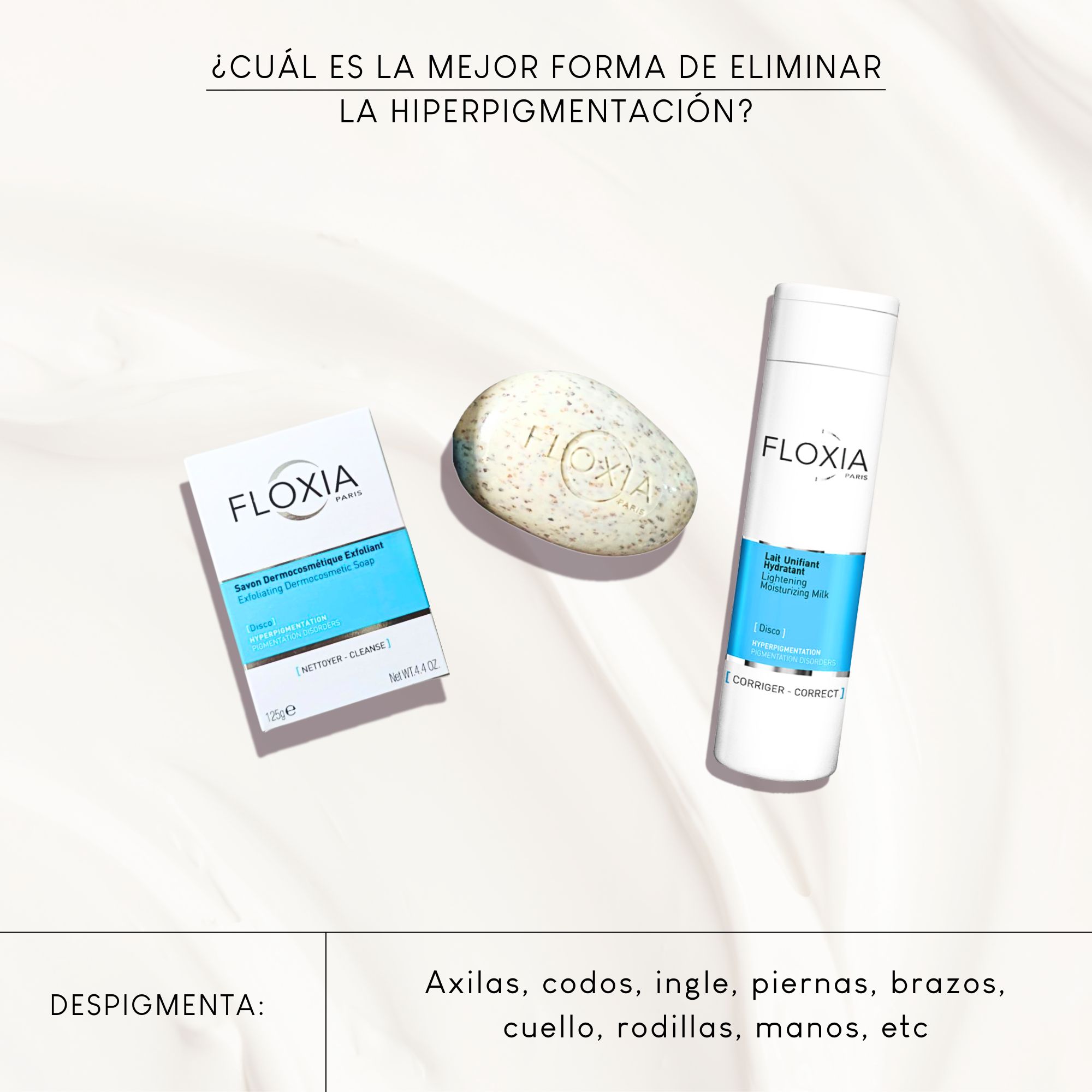 Cuida tu piel diariamente con dos productos corporales esenciales de la marca Floxia París reconocida por su enfoque dermatológico y fórmulas de alta calidad, ofrece una línea especializada para el tratamiento despigmentante de uso diario.
